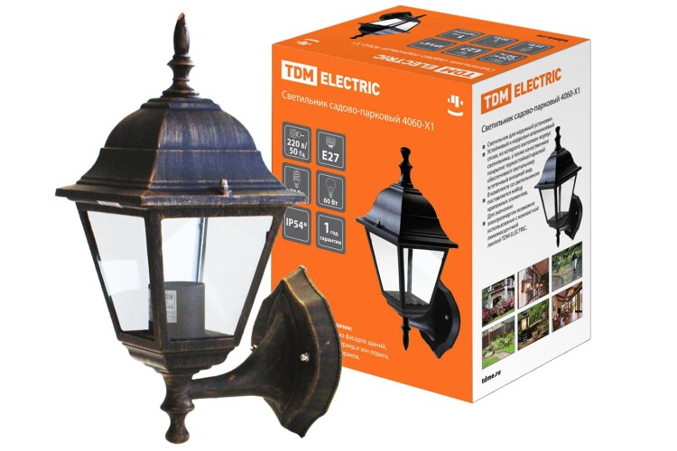 Светильник 4060-11 садово-парковый четырехгранник, 60Вт, вверх, бронза TDM