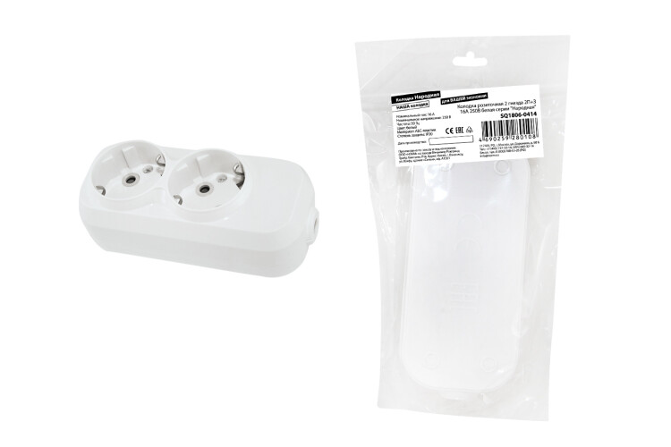 НАРОДНАЯ Колодка 2 гнезда с/з 16А 250В белая TDM (10/100шт)
