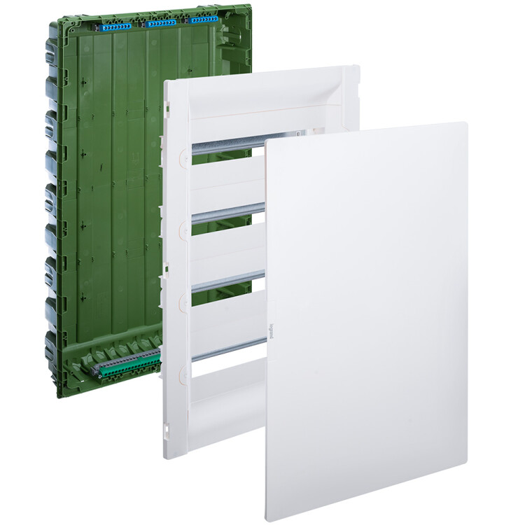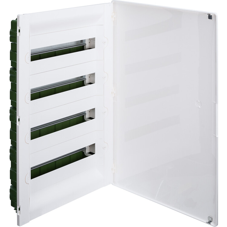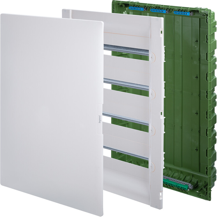 Legrand Practibox Бокс распределительный скрытого монтажа IP40, IK 07, 4 рейки - 72М - с клеммниками заземления и нейтрали - белая дверь