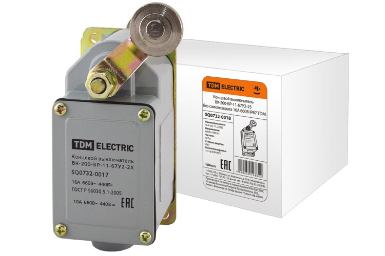 Применение:Промышленные предприятия.Cтроительно-монтажные организации Материалы:Контактная группа выполнена из электротехнической меди с гальваническим покрытием.Корпус выполнен из силумина (сплава кремния и алюминия) - материала, обладающего высокой устойчивостью к коррозии во влажной атмосфере, большой прочностью и износоустойчивостью.Преимущества:Простая ручная установка направления рабочего ходаВысокая коммутационная и механическая износоустойчивостьВысокая степень защиты от воздействия влаги и пыли Назначение:Выключатели концевые серии ВК предназначены для применения в электрических цепях управления, сигнализации и контроля относительного положения подвижных частей механизма в пространстве. 0: