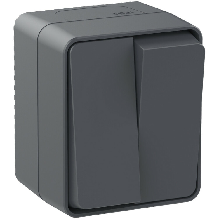 Степень защиты IP:54, Степень защиты IK: IK08. Продукция AtlasDesign Profi54 созданы специально для тех мест, где требуется повышенная защита от влаги и пыли. Уютная веранда в загородном доме, уличное кафе, любимый гараж или мастерская – выключатели и розетки будут обеспечивать надежную защиту и радовать глаз современным дизайном. Элегантный цвет антрацит гармонично впишется в любую обстановку.