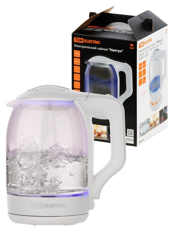 Электрический чайник "Нептун", стекло, 1,8 л, 1800 Вт, белый, TDM