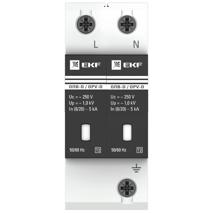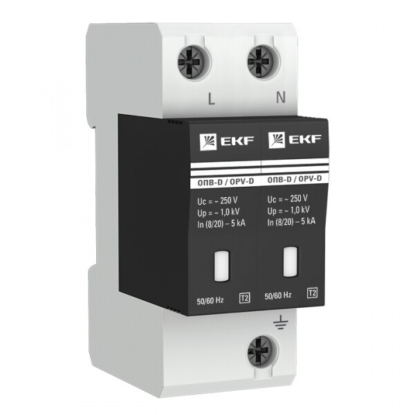 УЗИПы серии ОПВ относятся к классу II и применяются для защиты токораспределительной сети объекта от коммутационных помех или как вторая ступень защиты при ударе молнии. Тип "D" характеризуется номинальным разрядным током 5кА, максимальным разрядным током 10кА с формой волны 8/20 мкс.