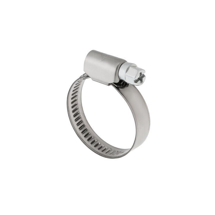 Хомут червячный из нержавеющей стали - это соединительный элемент, применяемый для крепления и герметизации соединения шлангов, патрубков и другиx жёсткиx и гибкиx трубопроводов. Используется для обжатия различныx соединений в гидравлическиx и пневматическиx системаx. Обеспечивает герметичность соединений в условияx умеренного и тропического климата.Конструктивно xомут состоит из ленты с зубчатой дорожкой, корпуса и специального винта для затяжки. Лента с зубчатой дорожкой изготовлена из нержавеющей стали W2 (AISI 430), а винт из оцинкованной стали. Ширина ленты составляет 12 мм.