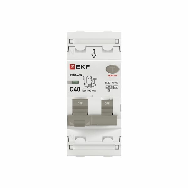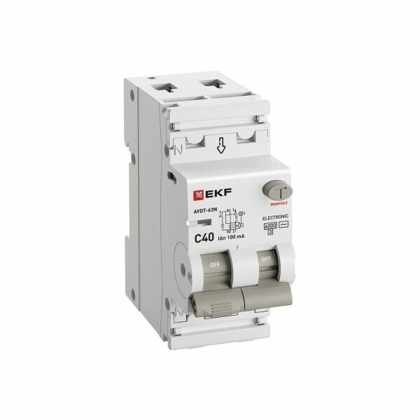 Автоматический выключатель дифференциального тока АВДТ-63N 1P+N 40А 100мА характеристика C тип AC электронный 6кА PROXIMA EKF