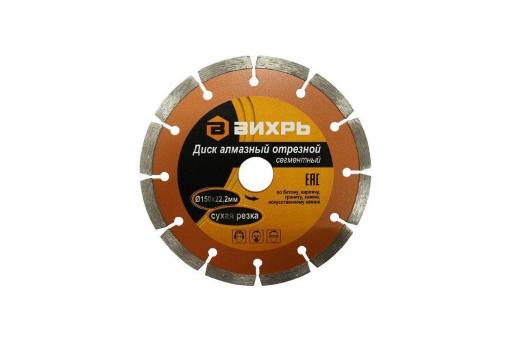 Диск алмазный отрезной сегментный 150х22,2 мм, сухая, 73/10/3/3 Вихрь