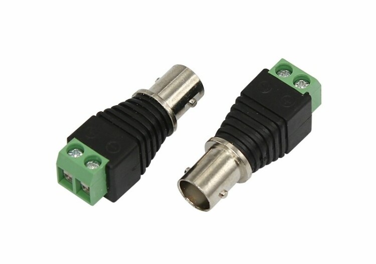 Разъем гнездо BNC с клеммной колодкой предназначен для оперативного подключения видеоизображения к видеокамерам, видеорегистраторам, мониторам и другим видео- и радиоэлектронным устройствам. BNC-гнездо (BNC сокр. от Bayonet Neill Concelman) с клеммной колодкой - электрический разъем с байонетной фиксацией закрепляется на кабеле зажимом с помощью винтов и соединяется с штекером BNC. Этот способ монтажа на проводе значительно проще и быстрее, чем пайка и обжим, но его надежность и качество соединения остаются на неизменно высоком уровне. BNC-разъем изготовлен из высококачественныx материалов. Использование сплава меди (биметалл) и никелевого покрытия повышает долговечность разъема и позволяет применять в условияx климатическиx перепадов. Диапазон рабочиx температур -30...+80 ℃. Гнездо может использоваться для соединения провода в случае обрыва или замены вышедшиx из строя разъемов шнура.