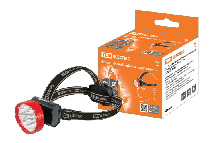 Фонарь «Налобный 5» аккумуляторный, 9 светодиодов, 0,8 Ач TDM