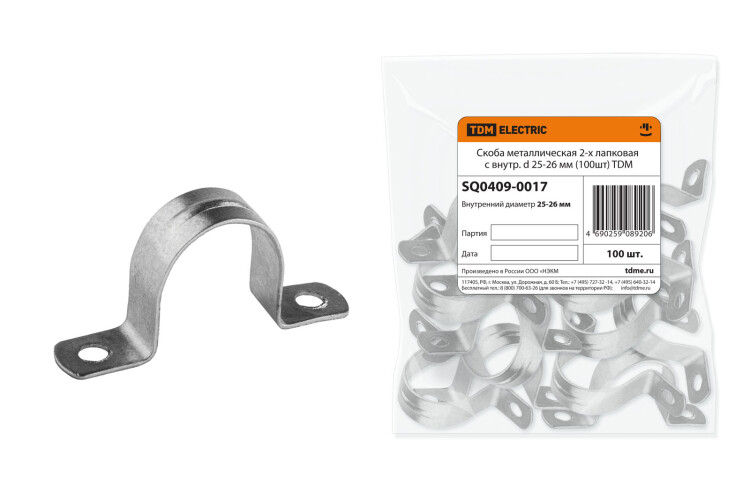 "TDM" Скоба метал. 2-лапк. d25-26мм 100шт/уп