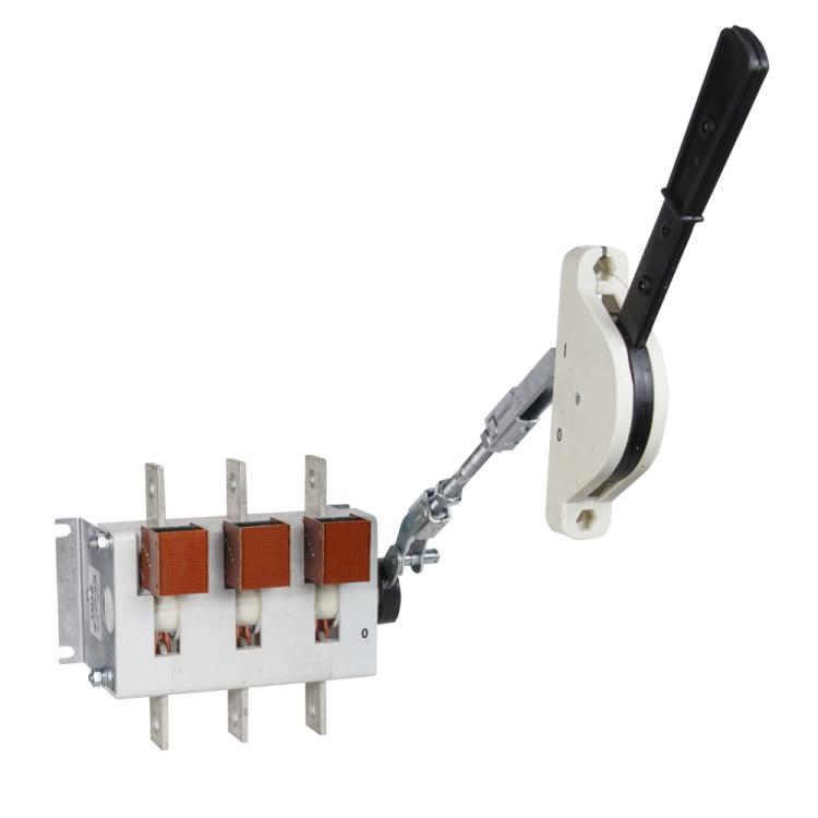 Выключатель-разъединитель 3 полюсный на номинальный ток 630 А, в котором установлена несъемная рукоятка.