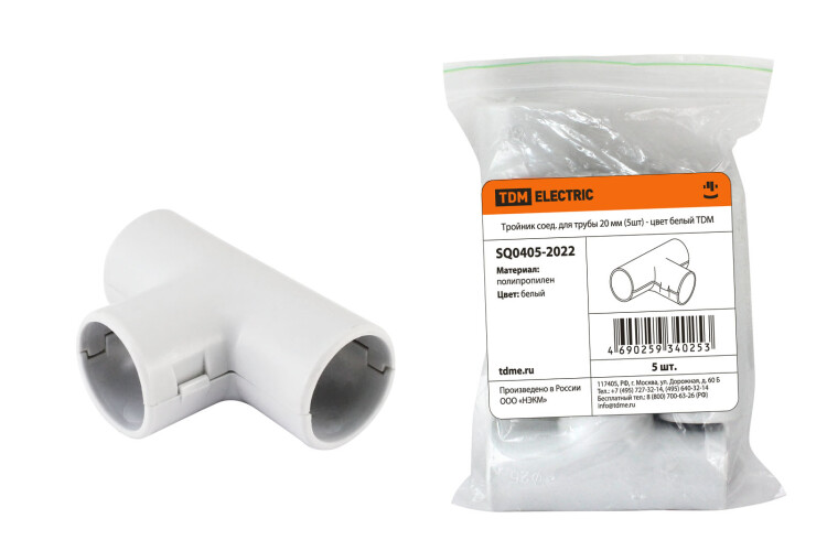 "TDM" Тройник для пласт. трубы белый IP40 d20мм 5шт/уп