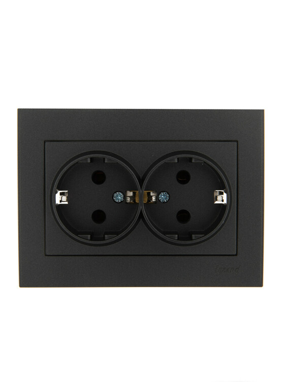 RAIN Розетка 2-ая с/з керамика черный графит матовый LEZARD (10шт/120шт)