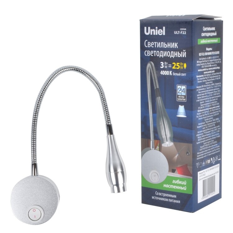 ULT-F22-3W/4000K IP20 SILVER Светильник светодиодный настенный гибкий для интерьерного освещения. 85-265В. Белый свет (4000К). Серебряный. TM Uniel