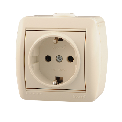 NATA Розетка 1-ая с/з керамика крем LEZARD (10шт/120шт)