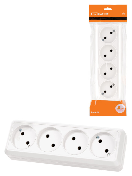 ЛАДОГА Розетка 4-ая б/з 10А белый TDM (10/200шт)