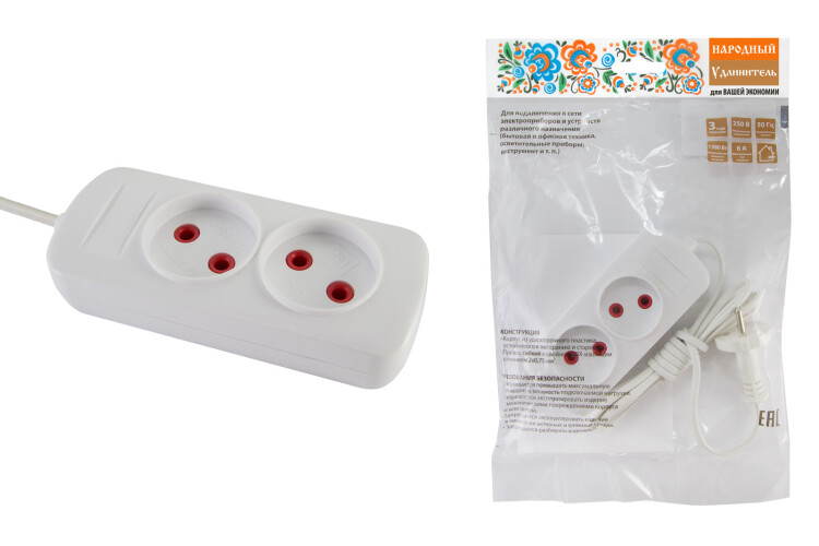 Применение:Для подключения нагрузки до 2200 Вт, что превышает суммарную мощность всех основных бытовых приборов. Материалы:Ударопрочный корпус.Провод повышенной гибкости в двойной ПВХ-изоляции.Преимущества:Сечение провода полностью соответствует максимальной нагрузке, благодаря чему провод не нагревается, исключая вероятность возгорания.Корпус удлинителя белого цвета, подходит для любого интерьера. Назначение:Для использования в быту, офисе, загородном доме. 0: