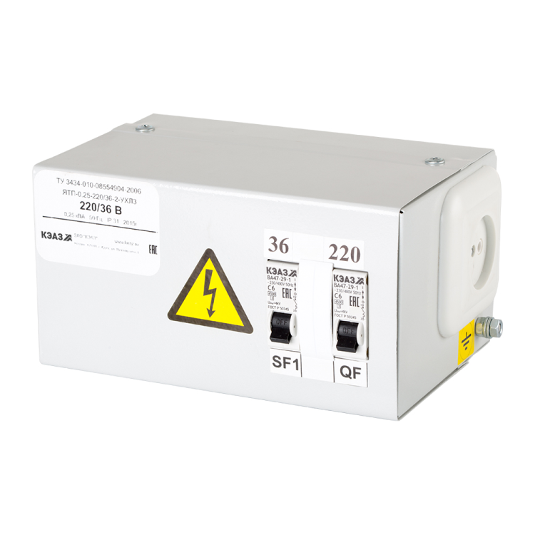 Ящик настенный с понижающим трансформатором ЯТП производства КЭАЗ предназначен для питания местного и ремонтного освещения, а также для подключения электроинструмента и переносных осветительных приборов.
