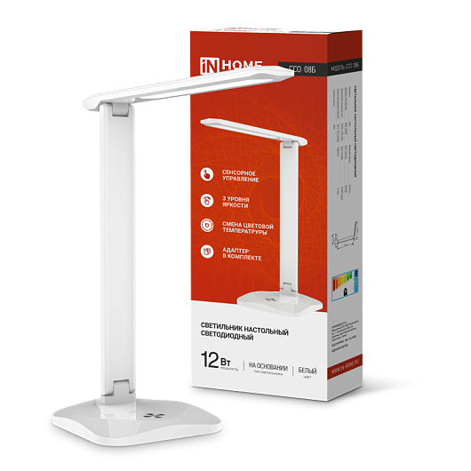 Светильник настольный светодиодный ССО 08Б 12Вт 600Лм сенсор 3 уровня яркости, с адаптером БЕЛЫЙ IN HOME