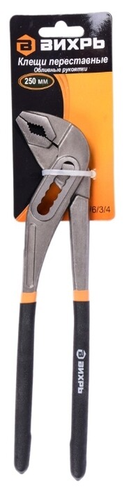 Клещи переставные , 250 мм, обливные рукоятки 73/6/3/4, Вихрь