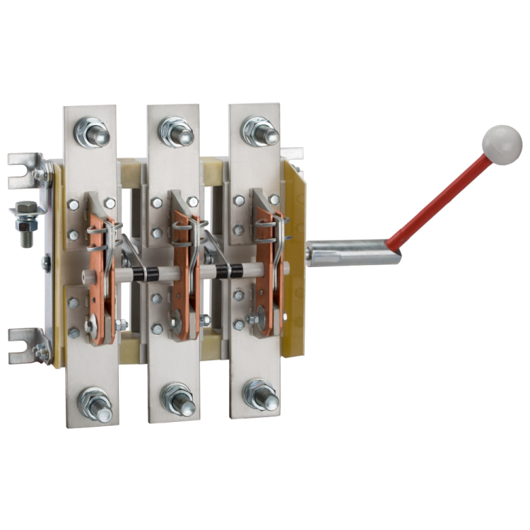 Выключатель-разъединитель 3 полюсный на номинальный ток 250 А, где установлена съемная рукоятка, а механическая износостойкость составляет 10000 циклов.