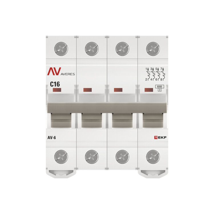 Выключатель автоматический AV-6 4P 16A (C) 6kA EKF AVERES