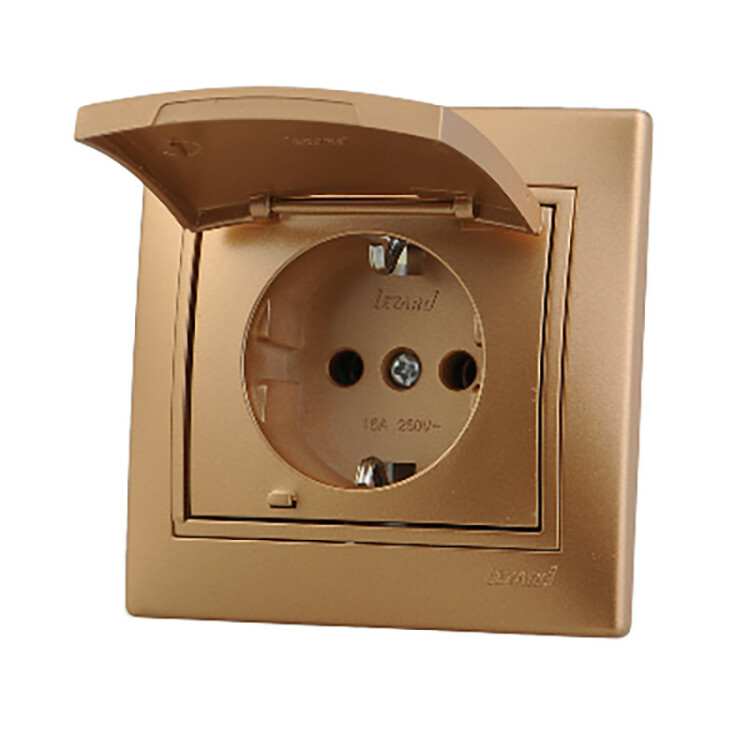 MIRA Розетка 1-ая с/з с крышкой керамика металлик золото со вставкой LEZARD (10шт/120шт)