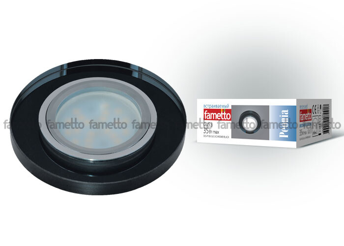 DLS-P106 GU5.3 CHROME/BLACK Светильник декоративный встраиваемый ТМ "Fametto", серия "Peonia". Без лампы, цоколь GU5.3. Основание металл, цвет хром. Отделка стекло, цвет черный.