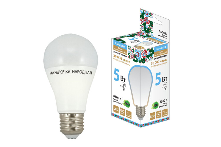 Лампа светодиодная НЛ-LED-A60-5Вт-6500К-Е27 58х109мм "Народная"