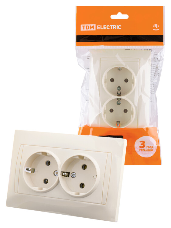 ЛАМА Розетка 2-ая 2П+З 16А слоновая кость TDM