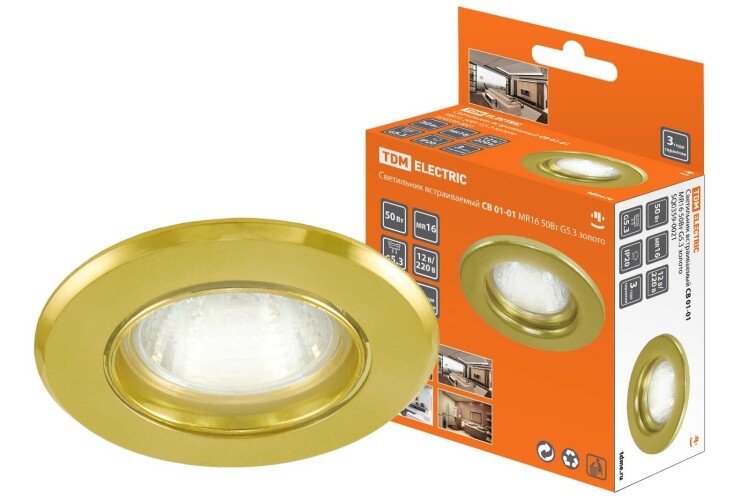 Светильник встраиваемый СВ 01-01 MR16 50Вт G5.3 золото TDM