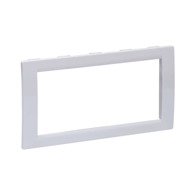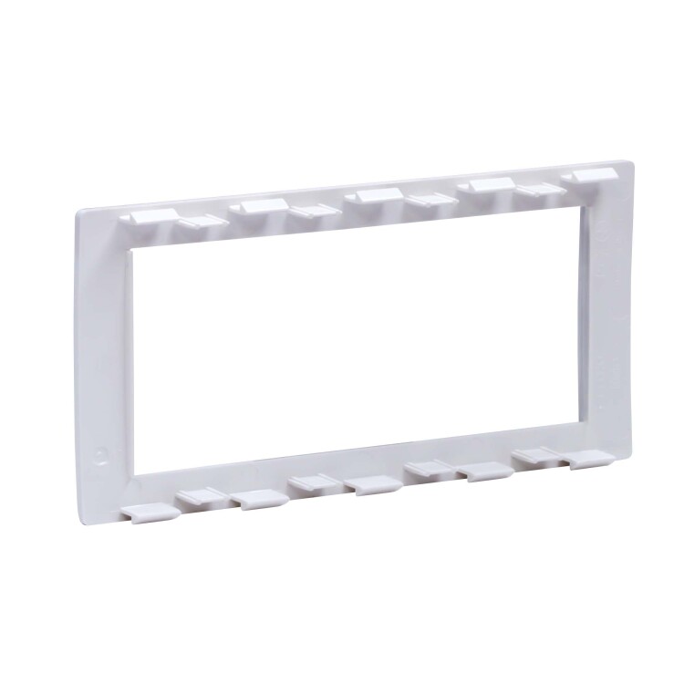 Рамка универсальная 4-модульная для ЭУИ. Назначение: монтаж ЭУИ серий "Viva" и типоразмера 45х45 мм в пластиковые короба серии "In-liner Front", алюминиевые короба и колонны "Aero", лючки и напольные башенки BUS. Характеристики: материал – АБС-пластик; универсальная − устанавливается поверх каркасов: F0000M, F0000MB, F0000A, F0000L; 2-модульная рамка устанавливается поверх одного 2-модульного каркаса; 4-модульная рамка − поверх двух 2-модульных каркасов; 6-модульная рамка − поверх трех 2-модульных каркасов. Цвет: Белый