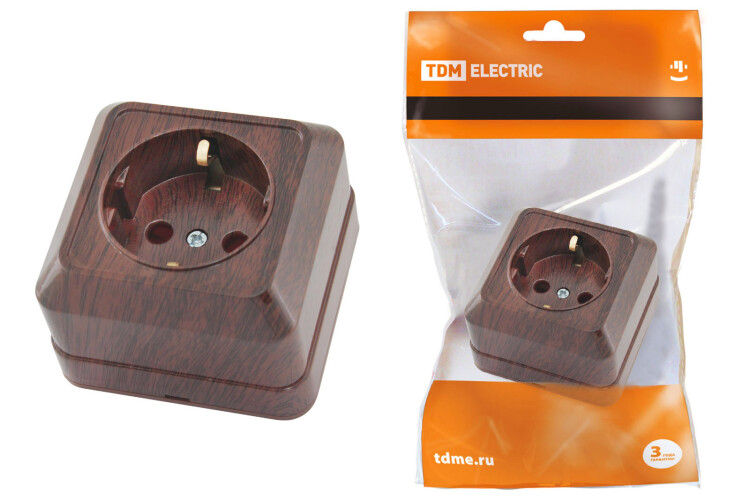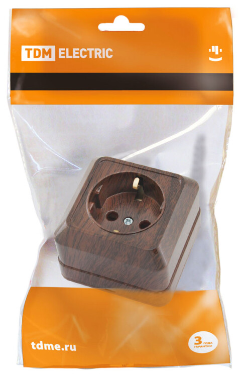 ЛАДОГА Розетка 1-ая с/з 16А бук TDM (10/200шт)