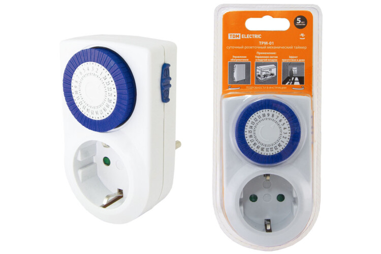 Применение: Для автоматизации управления бытовыми электроприборами, освещением и др. Материалы:Микросхемы реле выполнены на современной элементной базе.Пластик, не поддерживающий горение.Преимущества:Таймер ТРМ легко и быстро программируется в течение 1 минуты.Таймер ТРЭ может программироваться для работы в определенные дни недели, все программы повторяются каждую следующую неделю.Таймер ТРЭ имеет встроенный аккумулятор, который сохраняет всю информацию в течение 100 часов.Красочная блистерная упаковка дает всю необходимую информацию по применению для потребителя.Привлекательная цена на таймеры позволяет применять их широкому кругу потребителей. Назначение:Для автоматического включения/отключения различного электрооборудования в установленное время в течение суток (ТРМ-01) и в течение недели (ТРЭ-01). 0: