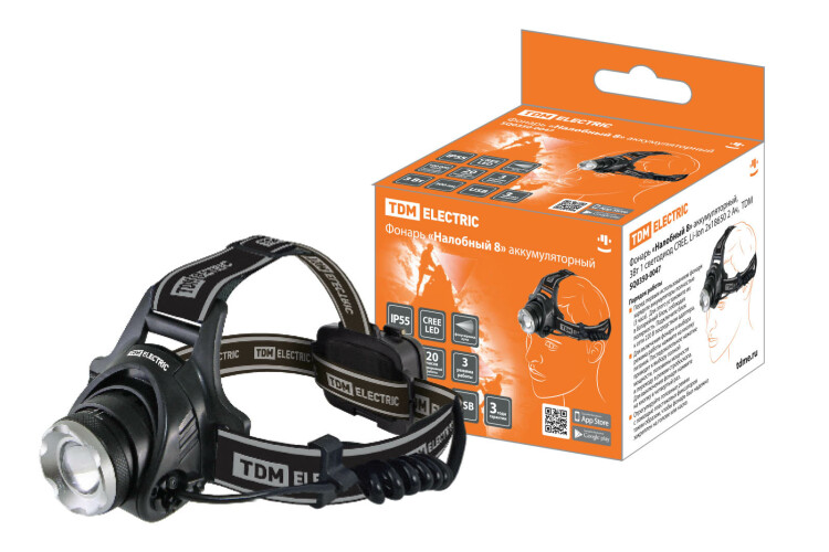 Фонарь «Налобный 8» аккумуляторный, 3Вт 1 светодиод CREE, Li-Ion 2x18650 2 Ач, TDM