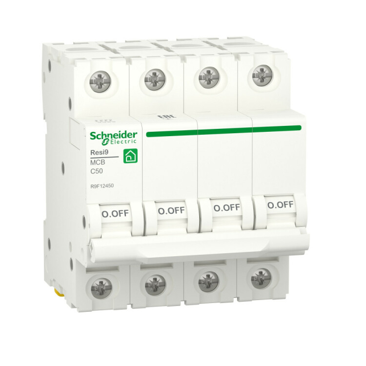 Автоматический выключатель (АВ) Resi9 используется для коммутации электрических цепей, также для защиты потребителей от перегрузок и короткого замыкания. В ассортимент Resi9 входят выключатели с номинальным током от 6 до 63А. Отличительной особенностью АВ Resi9 является наличие кривых отключения B и C, которые позволяют применить их в самых разнообразных модификациях электрических щитков.