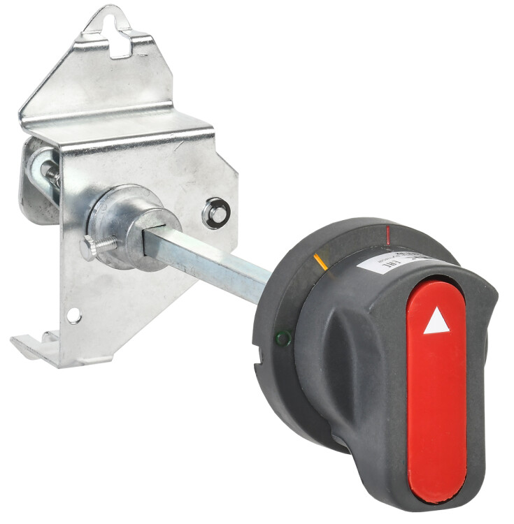 Ручной поворотный привод предназначен для преобразования вращательного движения в поступательное для управления автоматическим выключателем. Привод закрепляется на двери распределительного устройства для оперирования выключателем через дверь или непосредственно на выключателе.