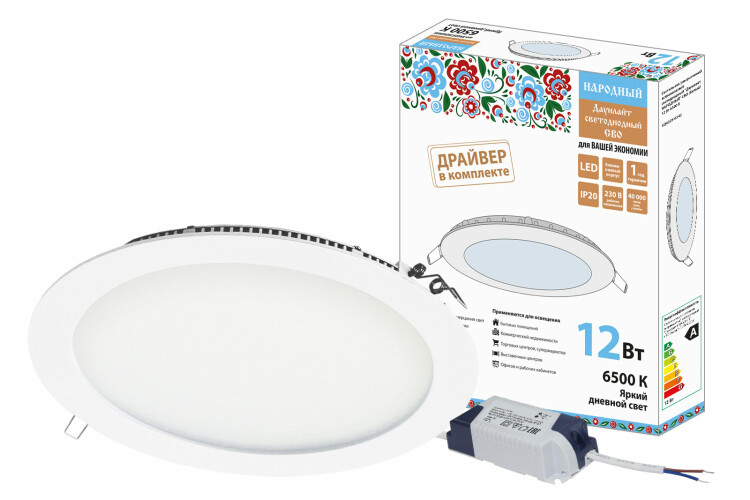 Светильник ультратонкий светодиодный СВО "Даунлайт" 12Вт 950Лм 6500К белая "Народная"