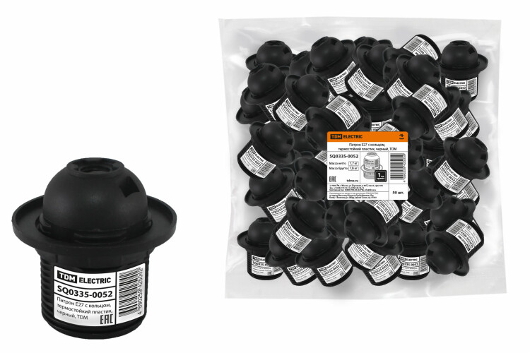 Патрон Е27 с кольцом, термостойкий пластик, черный, TDM