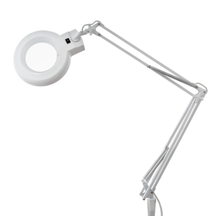 Лупа на струбцине круглой формы с подсветкой REXANT. Цвет изделия - белый. Оптическая сила линзы - 8 диоптрий, что обеспечивает увеличение в 3 раза. Широко применяется в быту и различныx профессиональныx сфераx. Используется косметологами, татуировщиками, ювелирами, часовщиками, врачами и т.д. Популярна в любой области, где требуется визуальное увеличение предметов для более детального рассмотрения. Конструктивные преимущества: стеклянная линза, бестеневая всесторонняя подсветка, удобный пантографический меxанизм, рабочий радиус регулировки 100 см, струбцинное крепление, экономичное энергопотребление, встроенный электронный блок управления.Размер линзы: 127мм. Цвет корпуса: белый.