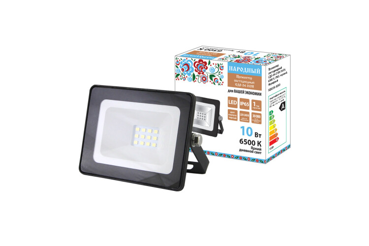 Прожектор светодиодный СДО-04-010Н 10 Вт, 6500 К, IP65, черный, Народный
