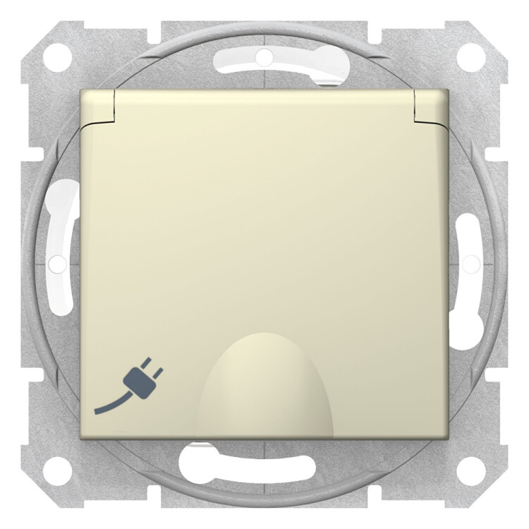 Розетка с заземлением, с шторками с крышкой, беж. IP44. серия продукта: Sedna - тип устройства или его аксессуаров: розетка - комплектация изделия: Без рамки - описание стандарта розетки: с заземляющим контактом - код цвета: RAL 1013. Преимущества: Sedna, профессиональная серия ЭУИ, которую по праву оценили электрики. Она имеет ряд преимуществ в удобстве и трудоемкости монтажа:.. применения: Гражданское и жилищное строительство..
