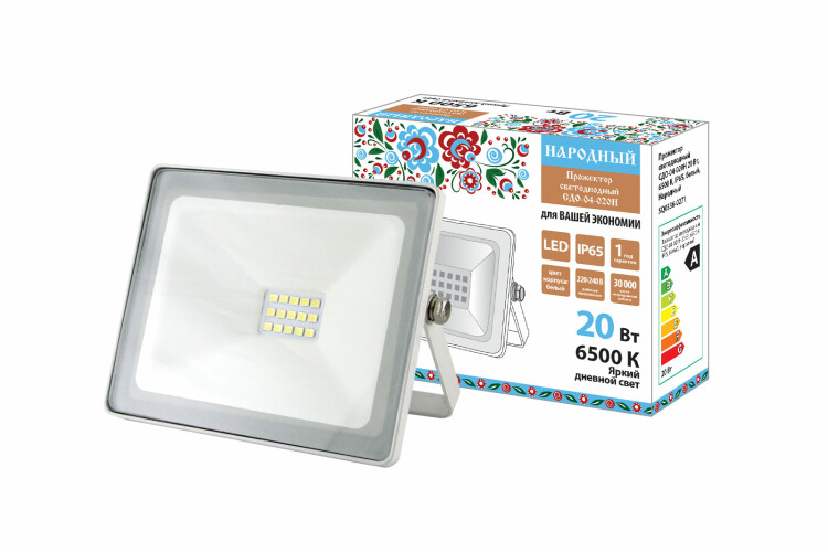 Прожектор светодиодный СДО-04-020Н 20 Вт, 6500 К, IP65, белый, Народный
