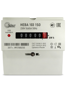 Счетчик э/энергии 1-фаз. 5-60А к.т.1.0, 1-тар. электр. на ДИН-рейку, корпус 2017 г НЕВА