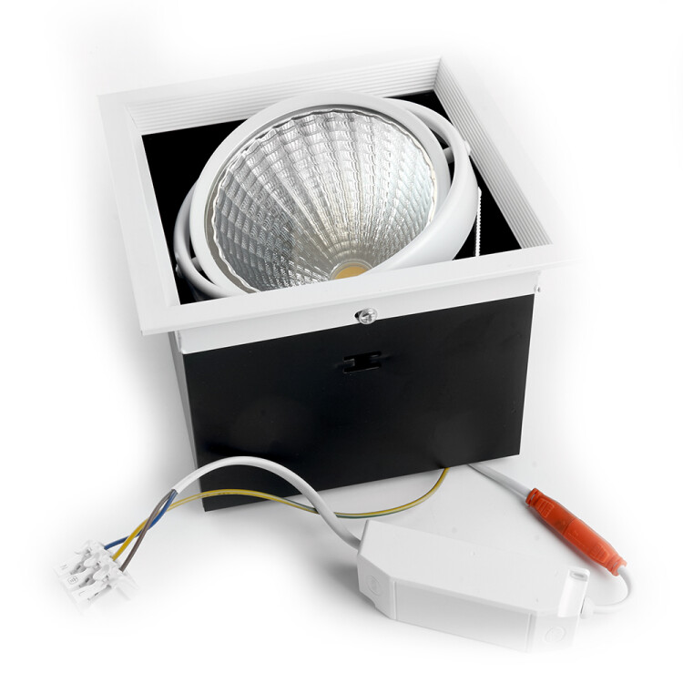 Светильник карданный встраиваемый светодиодный , карданный (ДВО) FERON AL211, 30W 4000К (белый), 170-265V, 2700Lm, IP20, угол рассеивания 35°, цвет белый, корпус алюминий, рассеиватель стекло, 185*185*130 мм, монтажн.отв. 165*165 мм.