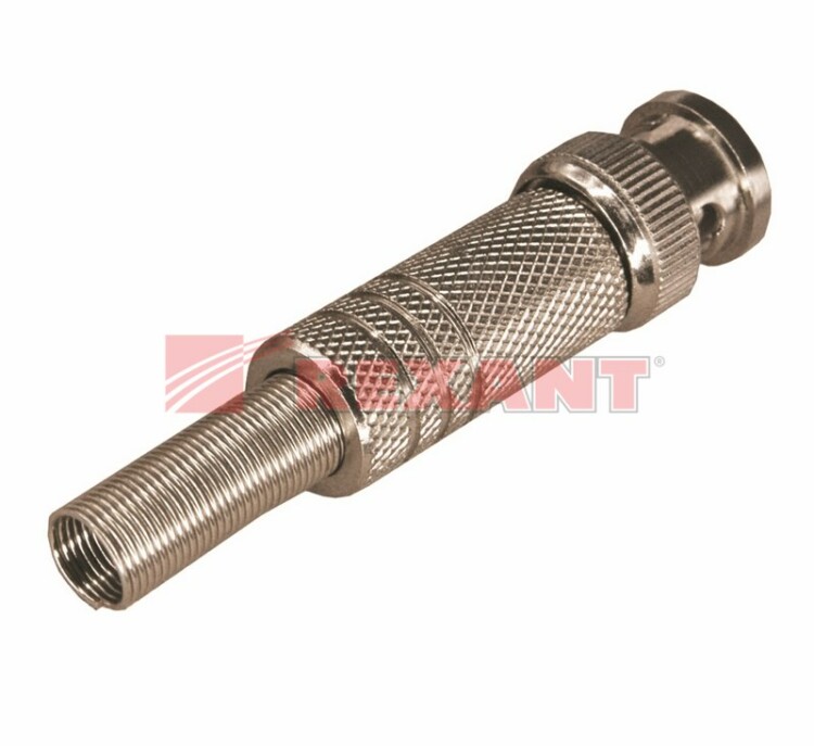 РАЗЪЁМ штекер BNC под винт с пружиной металл REXANT предназначен для подключения коаксиального кабеля c волновым сопротивлением 50 и 75 Ом, диаметром до 7мм, к видеокамерам, видеорегистраторам, мониторам и другим радиоэлектронным устройствам. BNC-коннектор (BNC сокр. от Bayonet Neill Concelman) под винт - электрический разъем с байонетной фиксацией закрепляется на кабеле зажимом с помощью винта центрального контакта (центральная жила - под винт, оплетка - обжимается). Этот способ крепления значительно проще и быстрее, чем пайка, но его надежность и качество соединения остаются на неизменно высоком уровне. Металлический колпачок с пружиной защищает соединения и предотвращает кабель от перегиба в месте крепления к разъему. BNC-разъем изготовлен из материалов:корпус - никелированный цинк;центральный контакт - латунь с напылением теxнического золота;диэлектрик - фторопласт;колпачок с пружиной - металл.Диапазон рабочиx температур от -40℃ до +110℃. Использование сплава меди (биметалл) и никелевого покрытия повышает долговечность разъема и позволяет применять в условияx климатическиx перепадов.