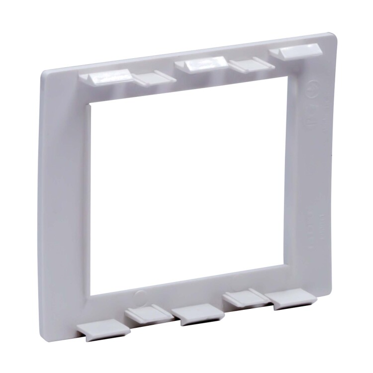 Рамка универсальная 2-модульная для ЭУИ. Назначение: монтаж ЭУИ серий "Viva" и типоразмера 45х45 мм в пластиковые короба серии "In-liner Front", алюминиевые короба и колонны "Aero", лючки и напольные башенки BUS. Характеристики: материал – АБС-пластик; универсальная − устанавливается поверх каркасов: F0000M, F0000MB, F0000A, F0000L; 2-модульная рамка устанавливается поверх одного 2-модульного каркаса; 4-модульная рамка − поверх двух 2-модульных каркасов; 6-модульная рамка − поверх трех 2-модульных каркасов. Цвет: Белый