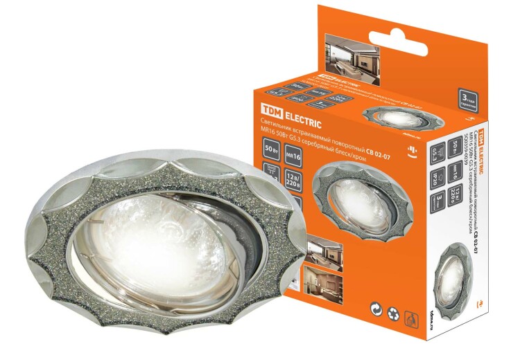 Светильник встраиваемый поворотный СВ 02-07 MR16 50Вт G5.3 серебряный блеск/хром TDM