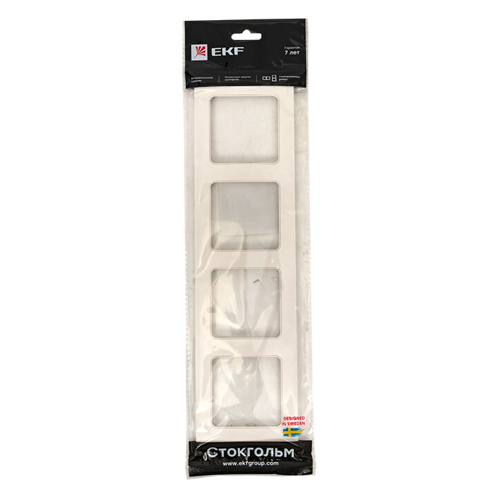 Рамка четырехпостовая EKF серии Стокгольм станет отличным решением, чтобы вписать электроустановочное изделие в ваш интерьер. Выполнена из поликарбоната, устойчивого к ультрафиолетовому излучению.