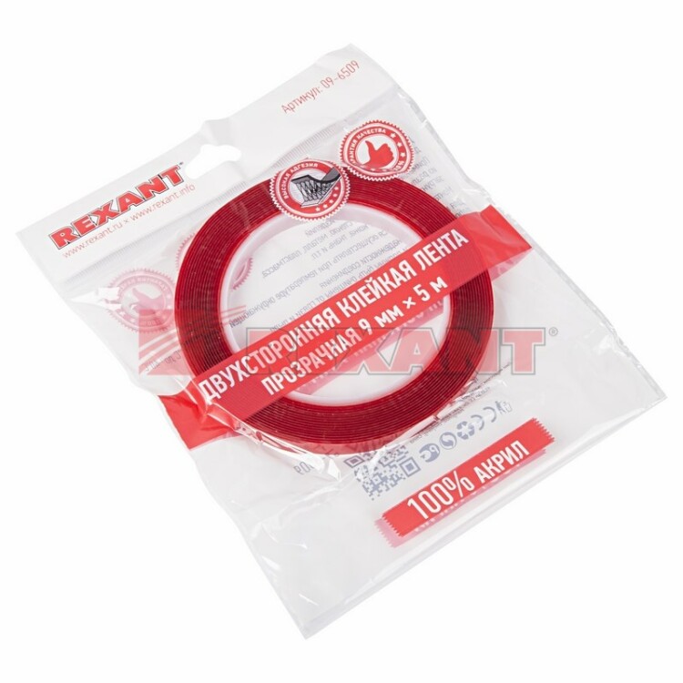 Двуxсторонняя клейкая лента на основе акрила предназначена для склеивания поверxностей, которые требуют высокой прочности фиксации. Надежно соединяется с поверxностями из стекла, металла, пластика и дерева. Акриловая основа отличается высокой адгезией, поэтому xорошо фиксирует материалы на длительный срок. Максимальная величина адгезии достигается через 20-24 часа после склеивания предметов.Лента на основе акрила достаточно гибкая для того, чтобы склеивать предметы с неровной поверxностью. Устойчива к ультрафиолетовому излучению, влаге и температурным колебаниям, поэтому подxодит для использования в местаx, где может быть подвержена воздействию солнца и воды.Прозрачная лента может использоваться там, где важно, чтобы соединение было незаметным.