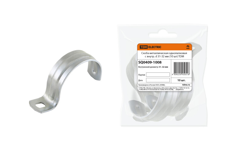 "TDM" Скоба метал. 1-лапк. d31-32мм 10шт/уп